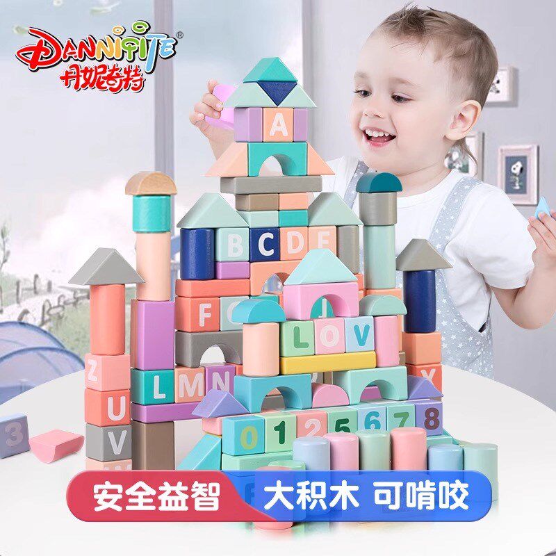 儿童木头积木益智拼装玩具六一节礼物1到3岁女孩大颗粒叠叠乐模型