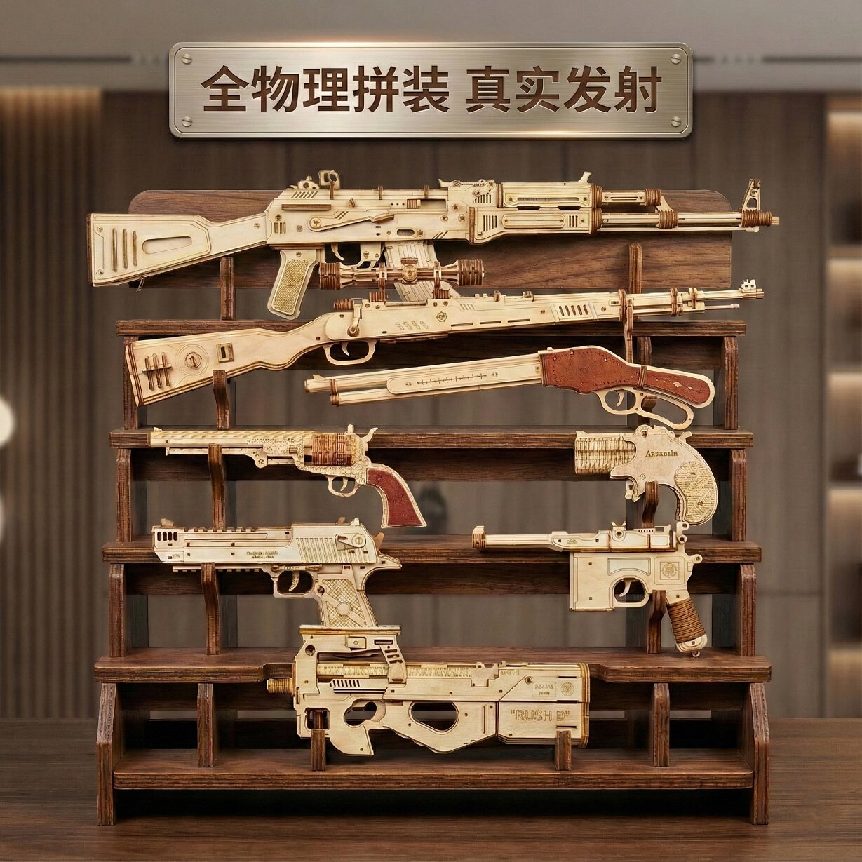 3d立体拼图木头枪玩具拼装模型可发射可收藏手工diy皮筋枪礼物男