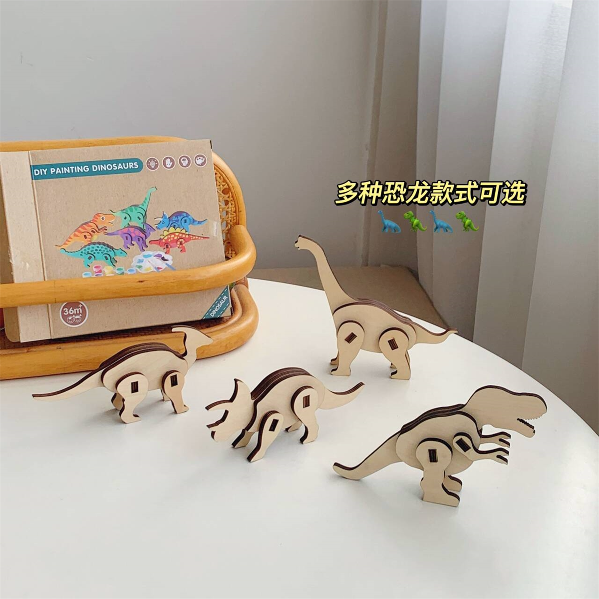 立体拼图木头木质积木拼装恐龙模型礼物儿童早教认知益智涂色玩具