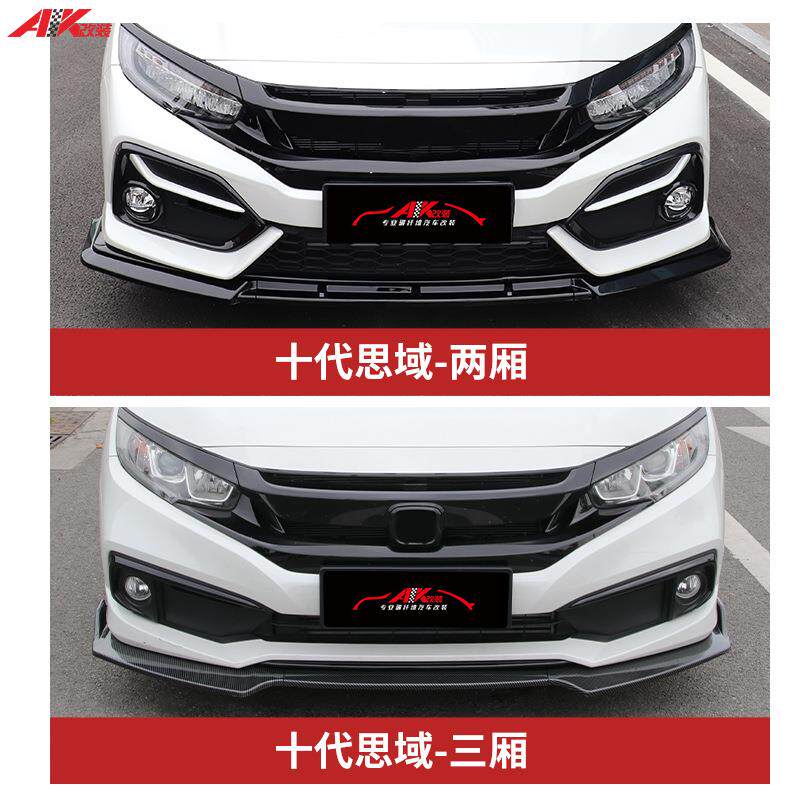 十代思域前铲角唇包包围下巴新思域改装三段式前防撞条403扰流板