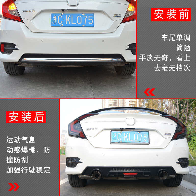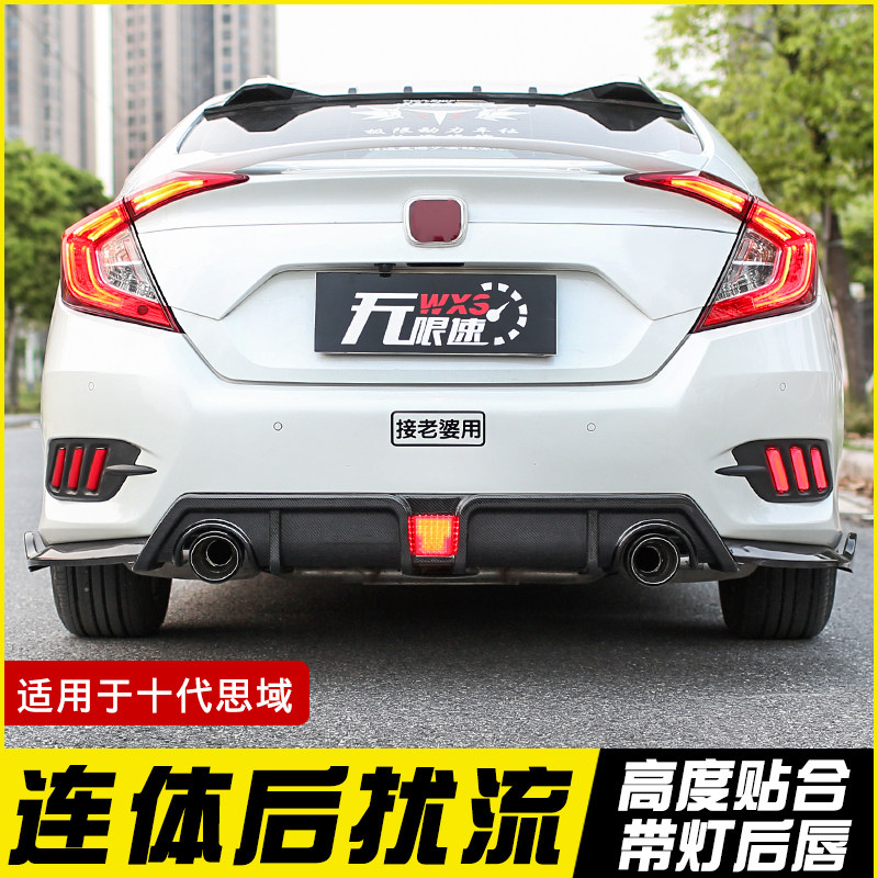 适用于十代思域改装前排气管后灯件带扰流板尾大小装饰喉包围唇铲