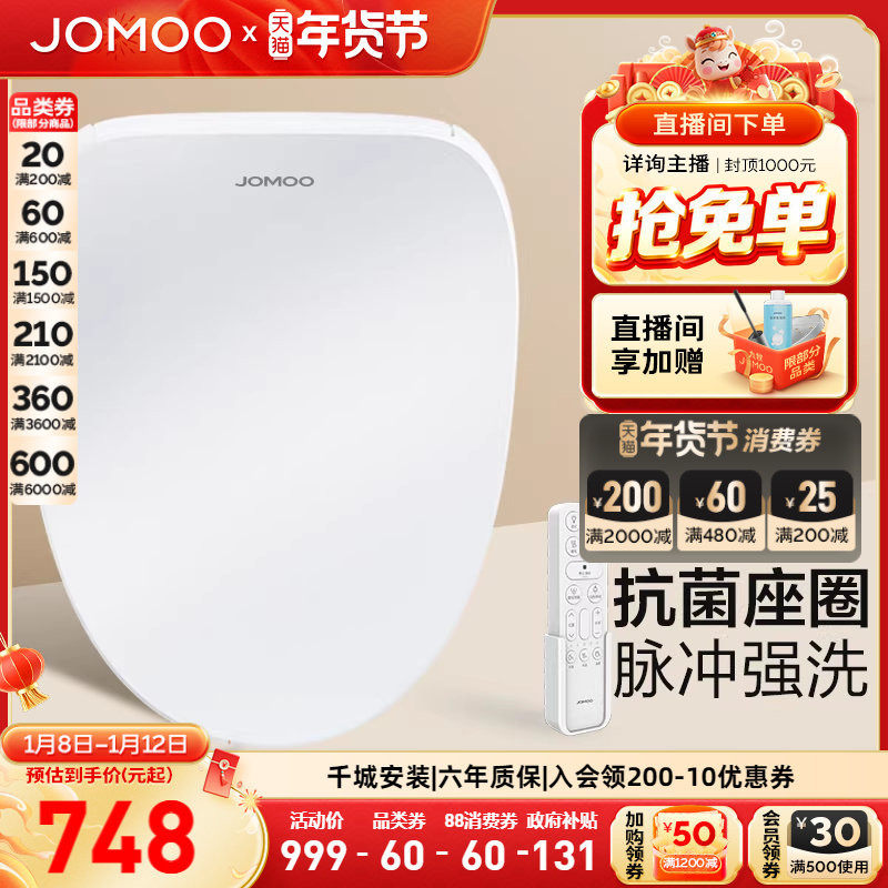 九牧智能马桶盖板即热冲洗暖风电动洁身器家用加热坐便座圈ZS021