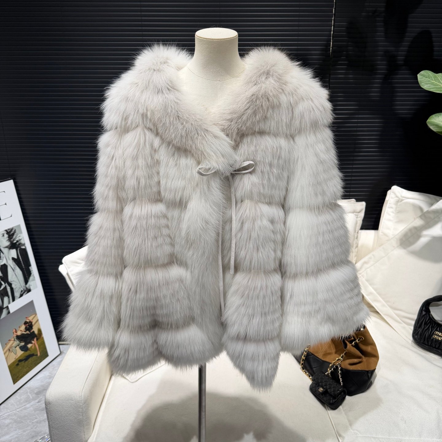MISSZHANG蝴蝶结狐狸毛皮草外套女2025冬季年轻短款毛毛外套女