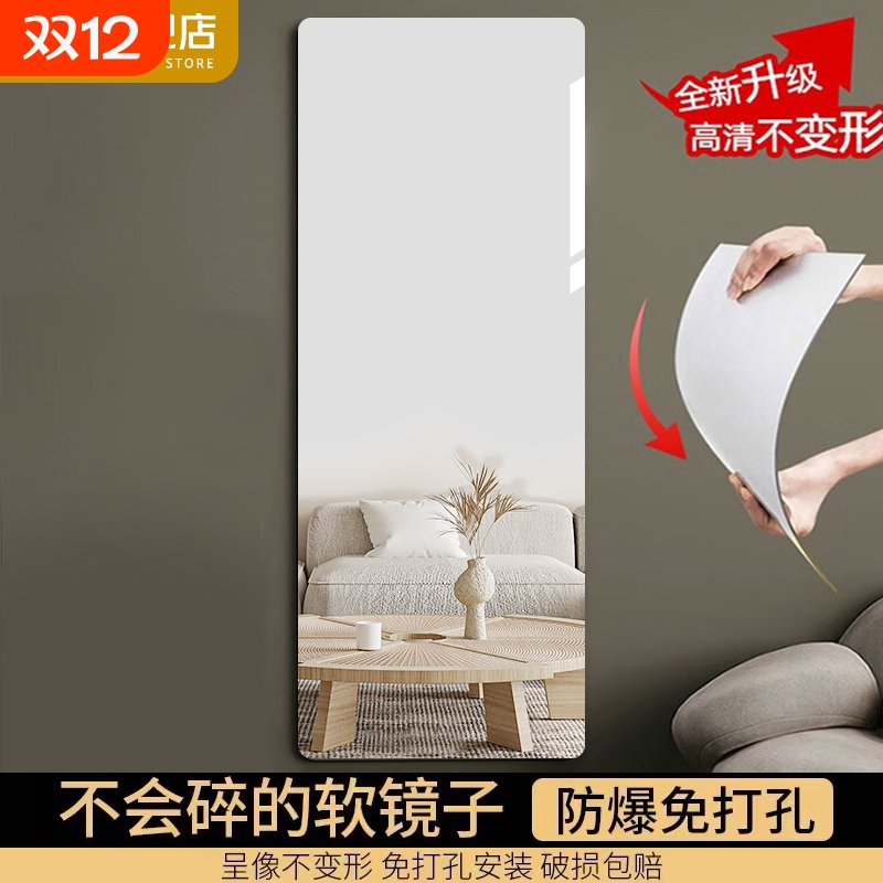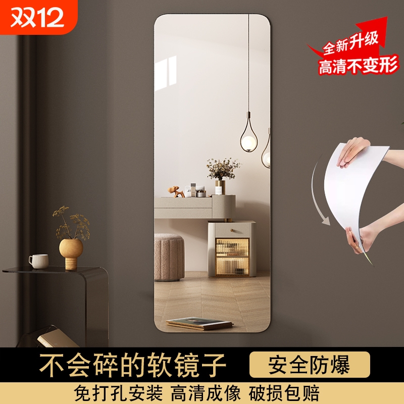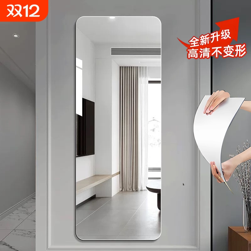 软镜子贴墙自粘定制高清亚克力穿衣镜全身镜落地镜家用安全免打孔