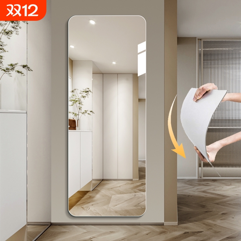 亚克力软镜子粘贴穿衣镜全身贴墙自粘家用试衣镜卧室镜面镜片墙贴