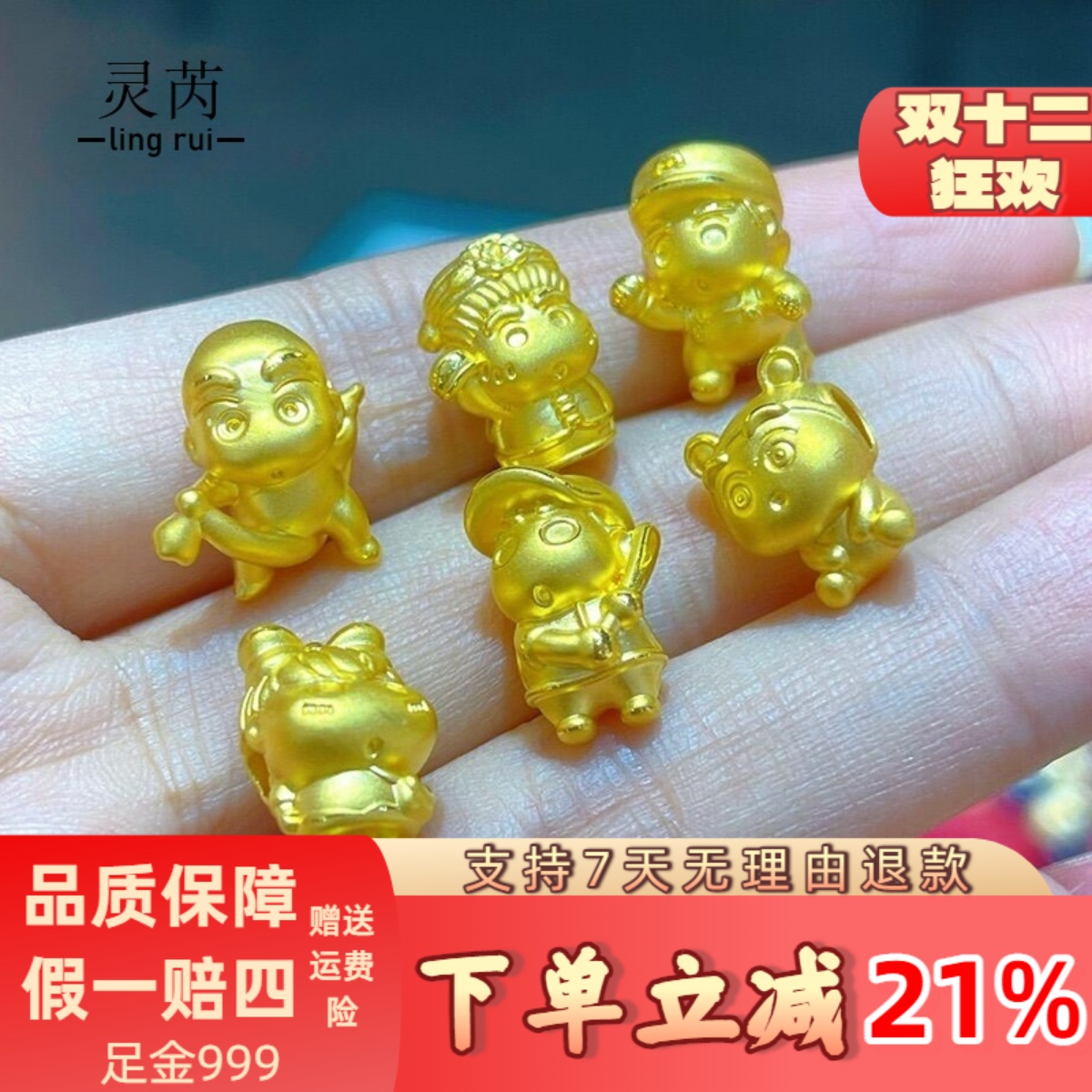 足金999黄金蜡笔小新3D硬金转运珠手链魔女小新生日纪念日送礼