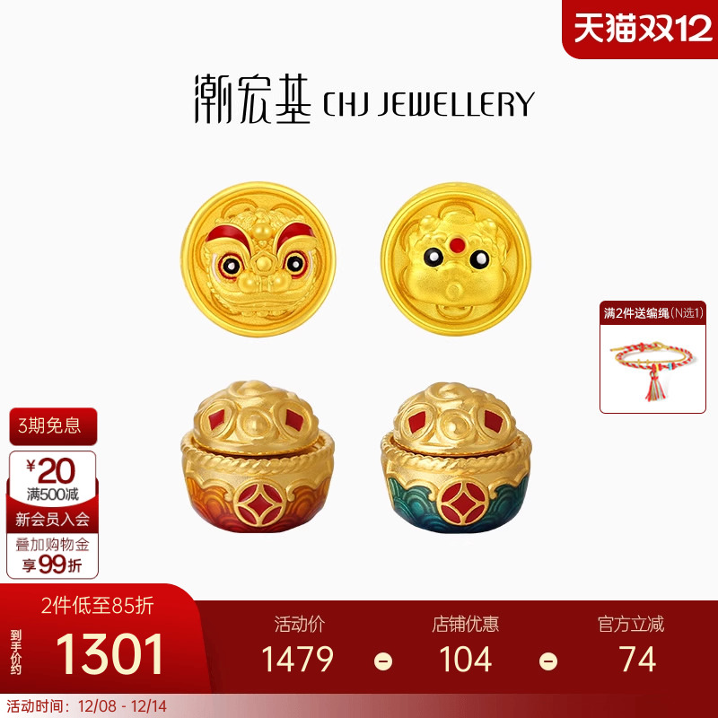 明牌珠宝黄金串珠 足金3D硬金转运珠福运多多福袋串珠AFP0242定价