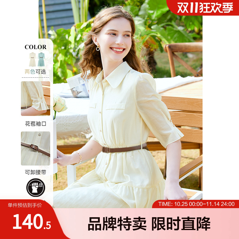 betu百图女装春装新款送腰带五分袖OL通勤显瘦气质连衣裙子