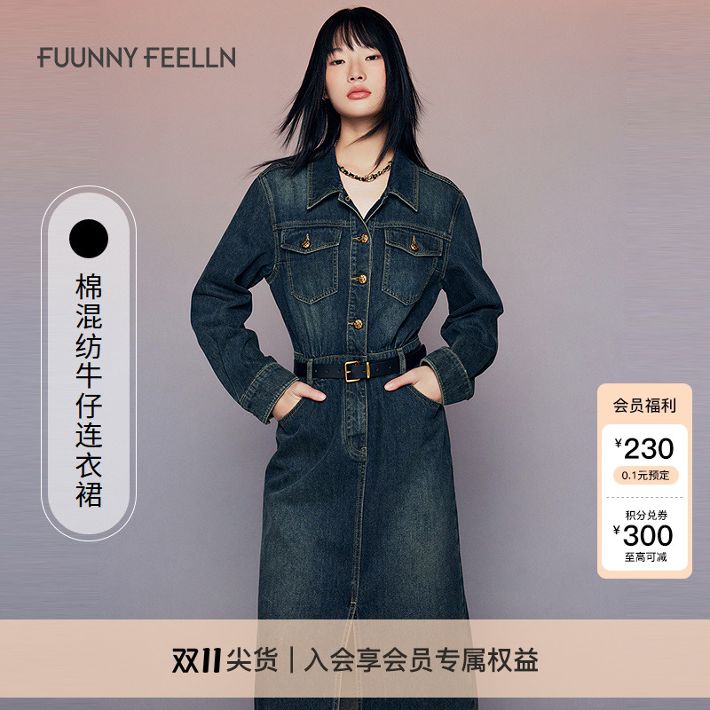 【废土色牛仔连衣裙】FF仿佛女装2025春装新款收腰显瘦复古牛仔裙