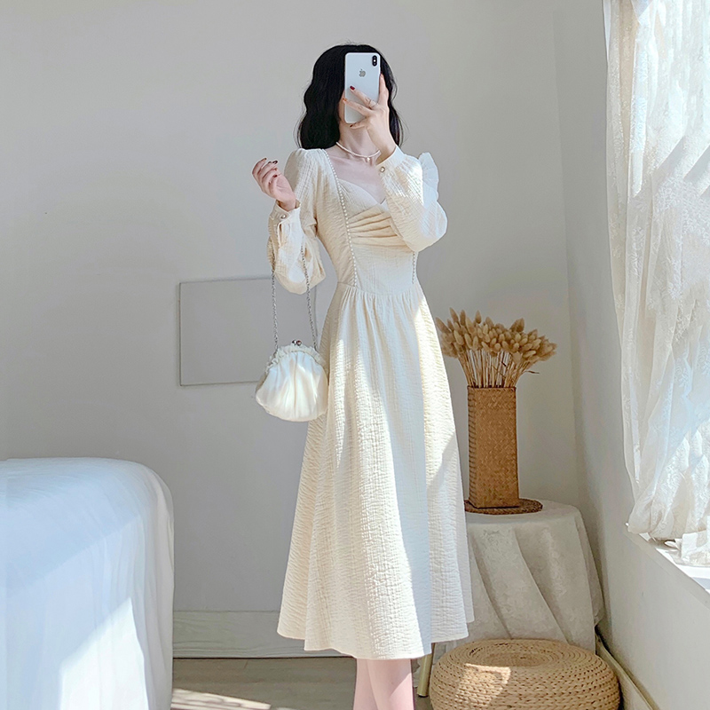 春装2024新款女装裙子法式复古收腰显瘦高级感轻奢长袖气质连衣裙