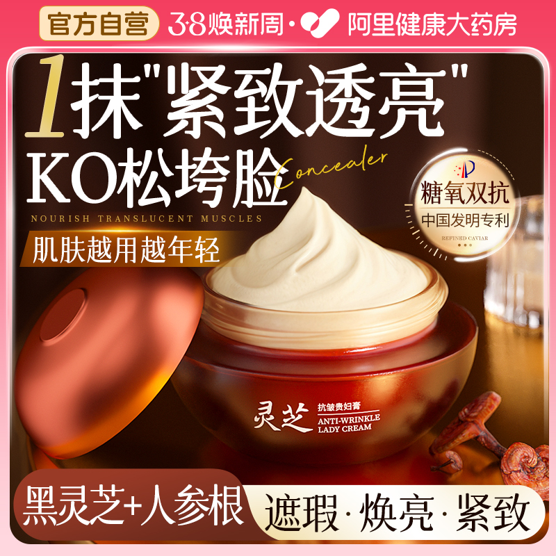 灵芝孢子粉贵妇膏抗皱紧致抗衰老面霜高保湿素颜霜官方旗舰店正品