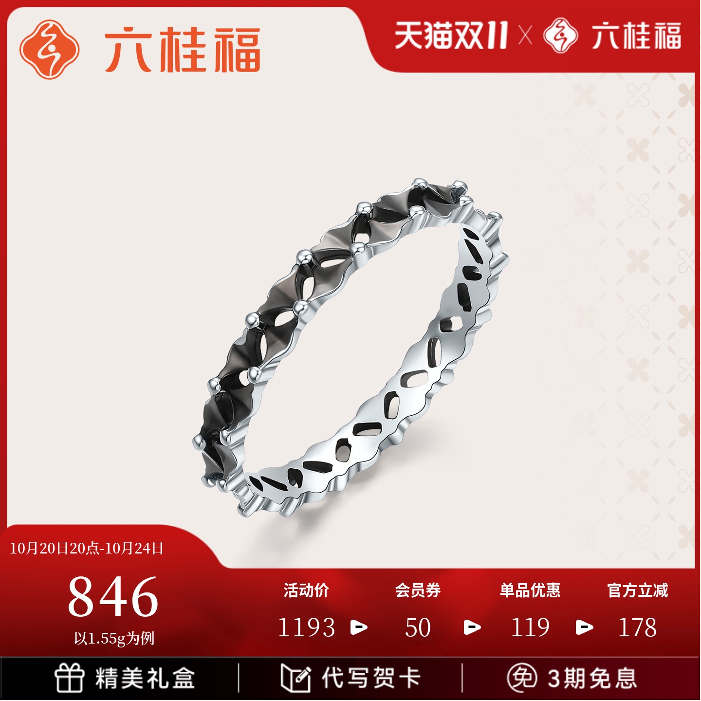 六桂福珠宝铂金麦穗叶子戒指女款简约小众设计白金细圈指环可调节