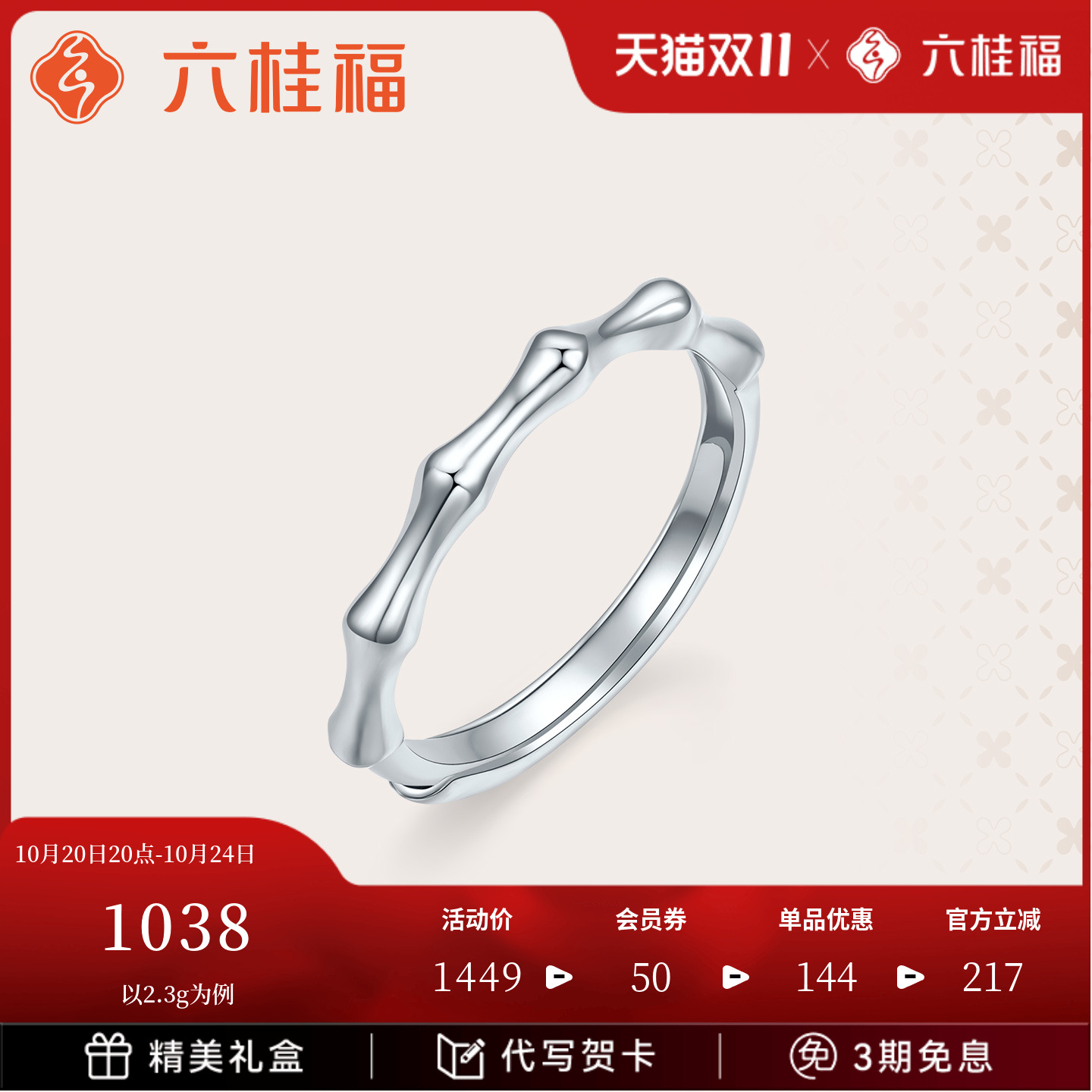六桂福pt950铂金竹节戒指简约白金素戒女2025年新款爆款
