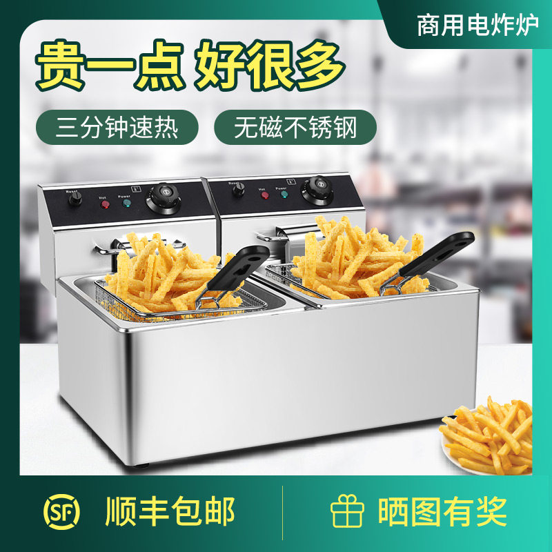 艾士奇油炸锅商用电炸炉电炸锅油条机炸串炸薯条薯塔机油炸机双缸