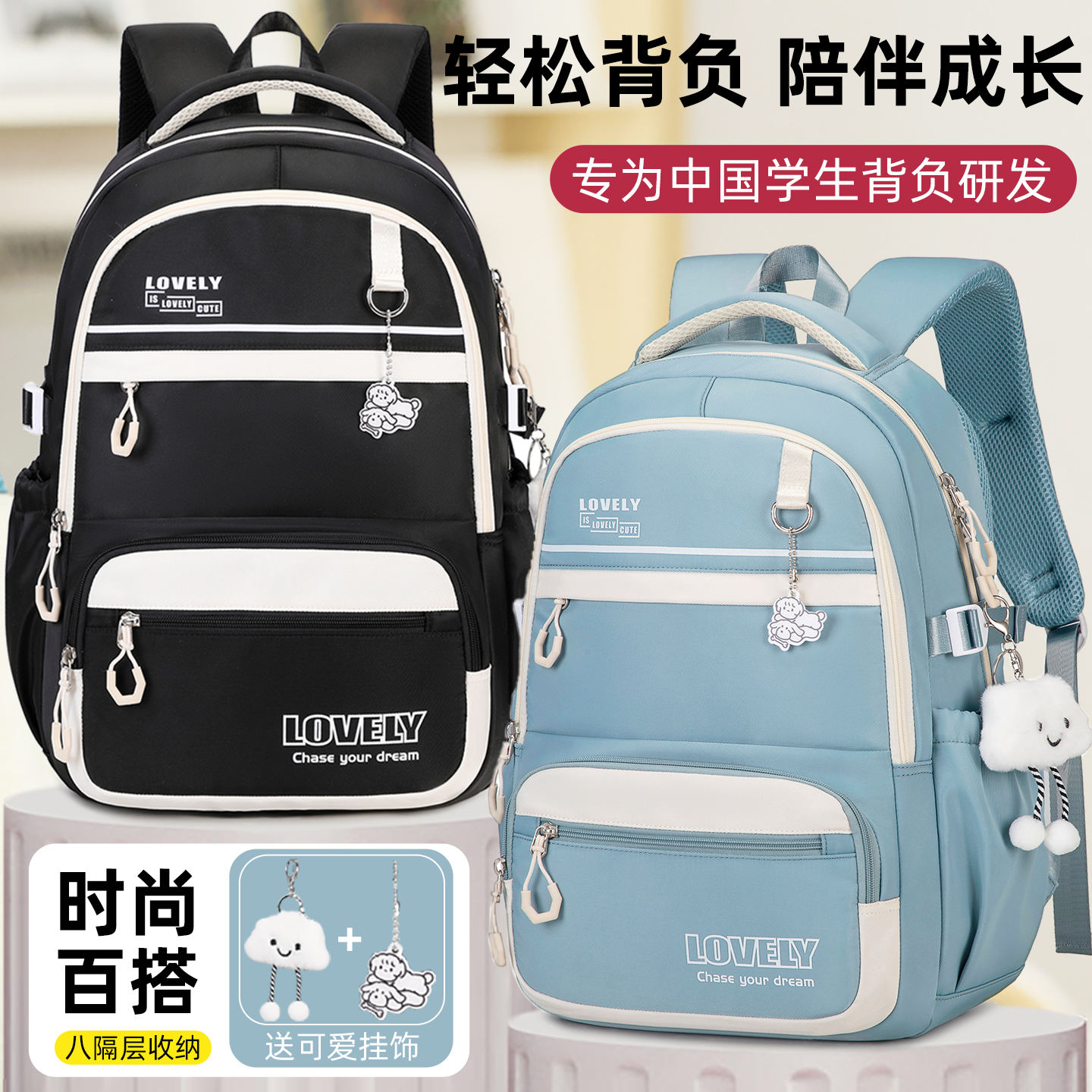 书包女生高中超大容量背包中学生初中生小学生3-6年级轻便双肩包