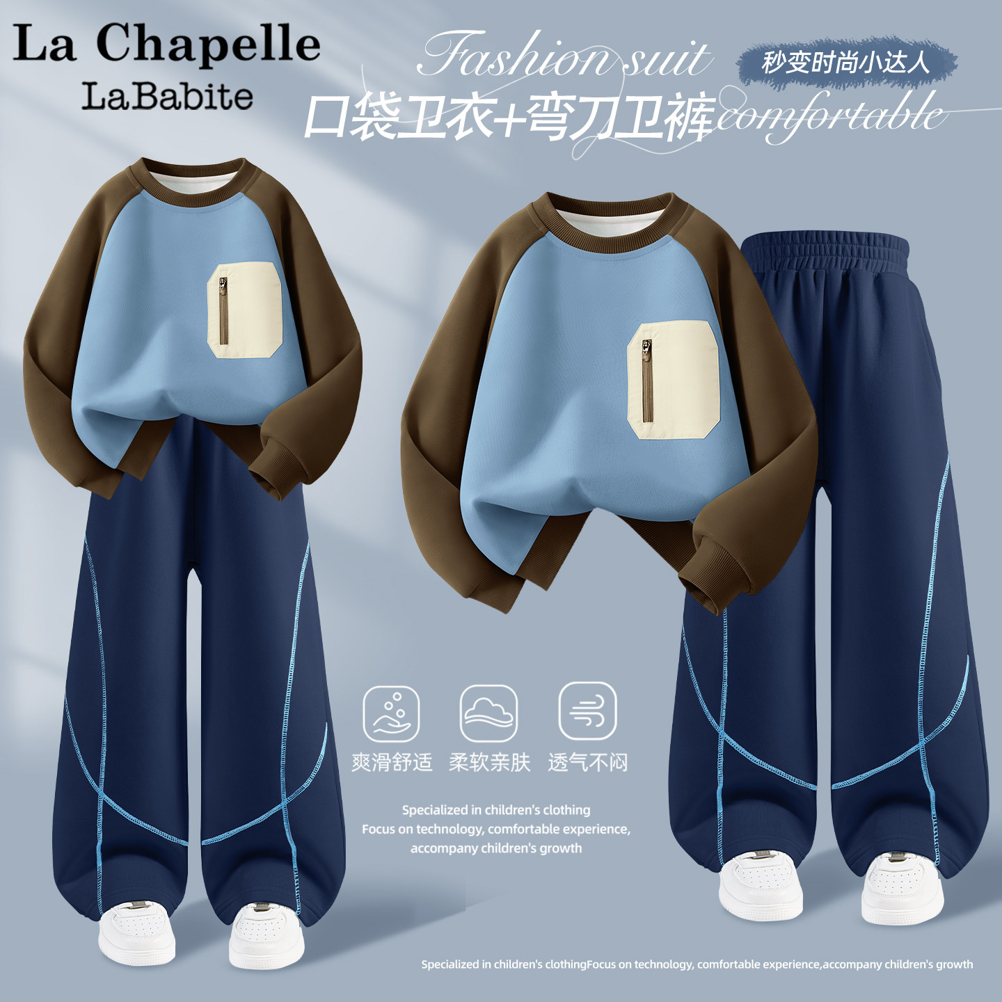 拉夏贝尔男童套装春装2026新款童装春季小男孩卫衣儿童弯刀牛仔裤