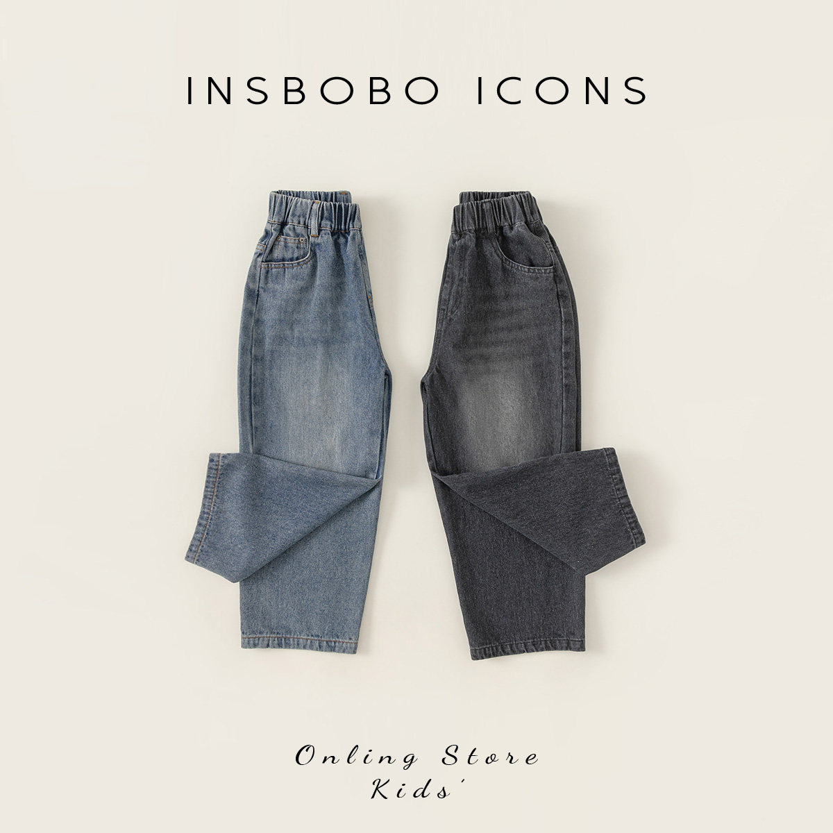 INSbobo男童裤子春秋装衣服儿童牛仔裤帅气休闲裤男孩长裤直筒裤