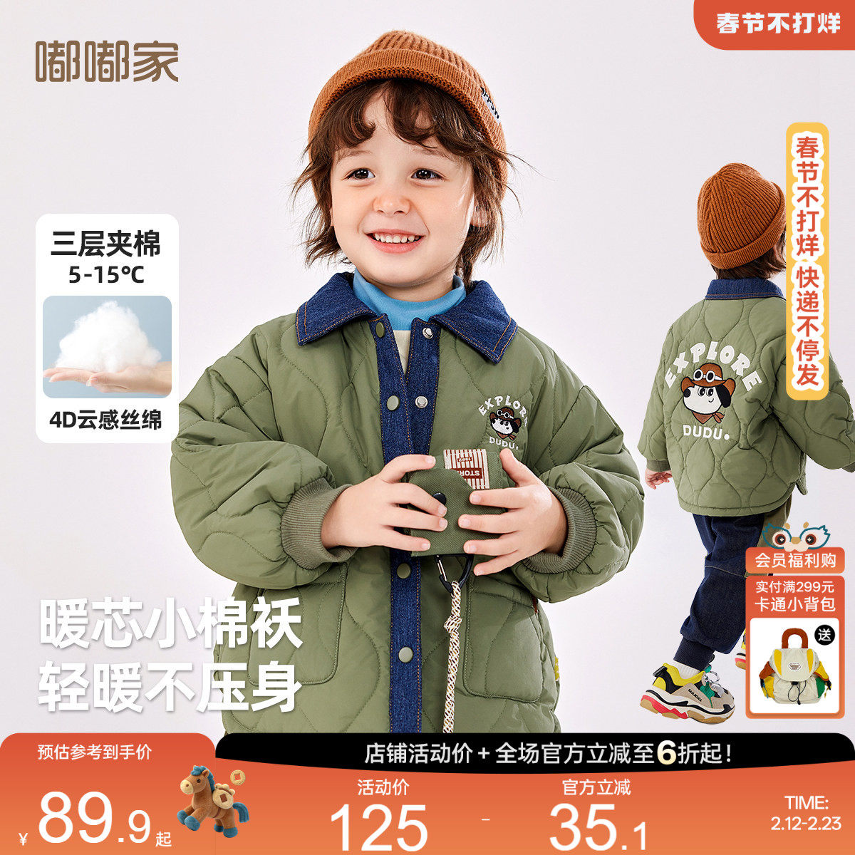 嘟嘟家男童棉服秋冬儿童牛仔拼接外套上衣冬宝宝棉袄冬季童装棉衣