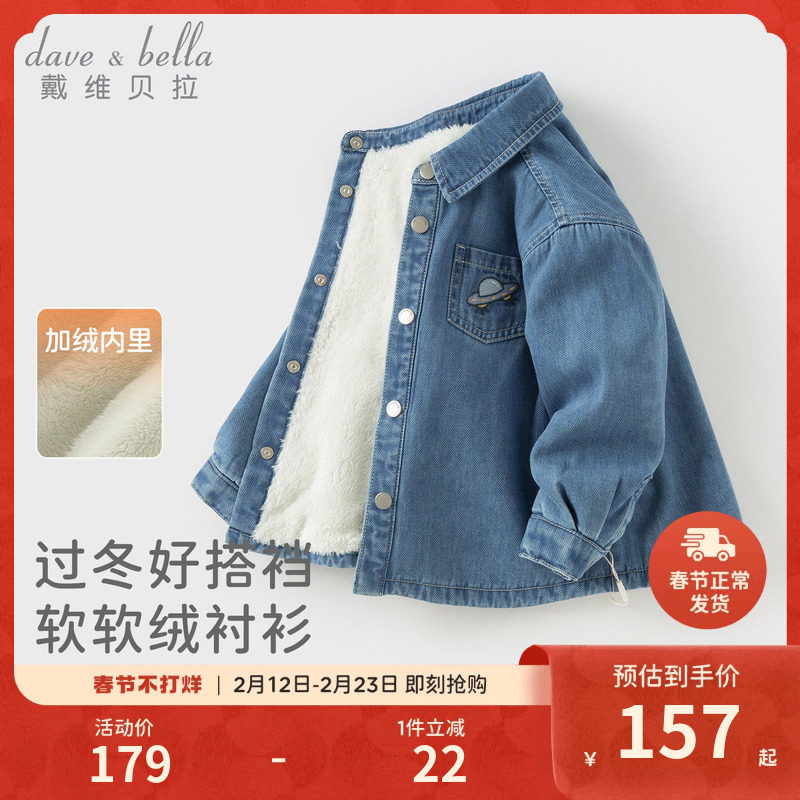 戴维贝拉儿童牛仔衬衫2026男童新款加绒衬衣宝宝冬季外套上衣A类