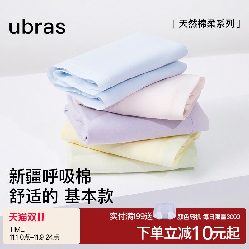 ubras纯棉内裤女100%棉加长抗菌裆透气无痕中高腰三角少女短裤头