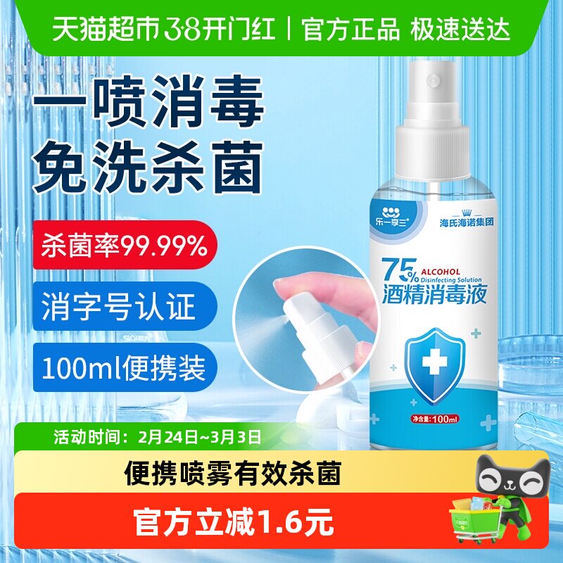 海氏海诺酒精75喷雾家用消毒乙醇皮肤杀菌护理消毒液便携100