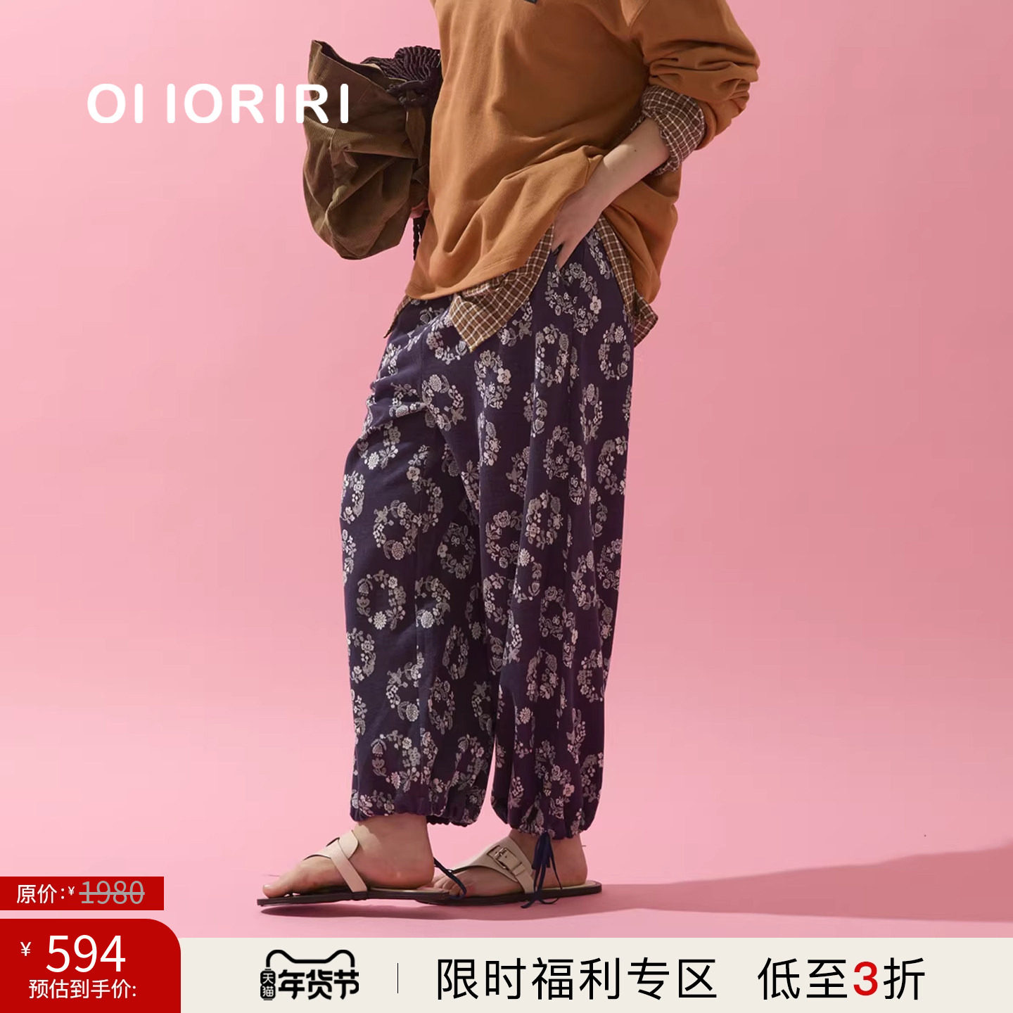 【3折限时福利款】OIIORIRI 罗马花有机棉运动长裤自然腰束脚裤子