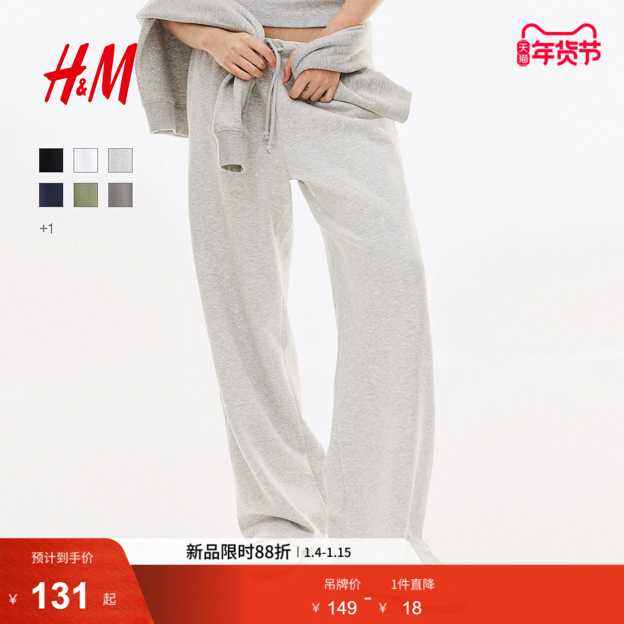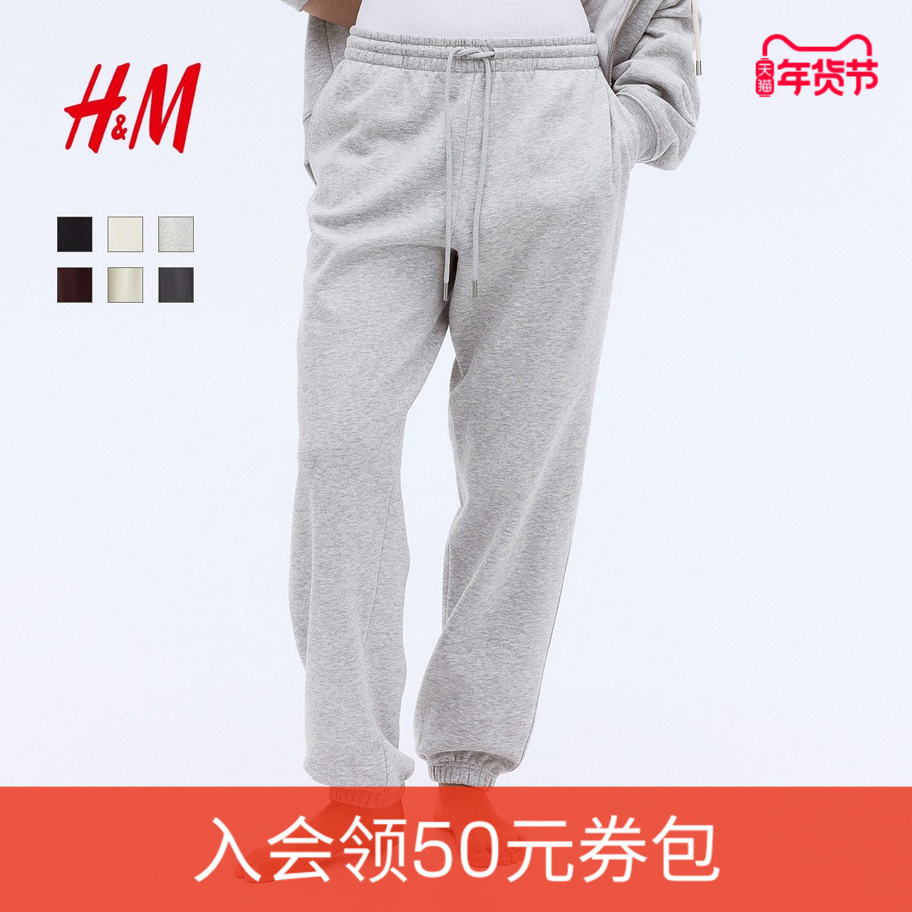 HM女装卫裤冬季松紧腰宽松时尚中腰休闲直筒舒适运动长裤1222211
