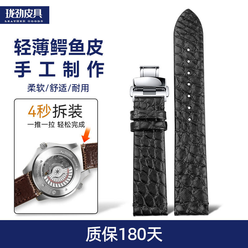 手工超薄鳄鱼皮表带适配浪琴天梭力洛克柔软真皮18 20 22MM男表链