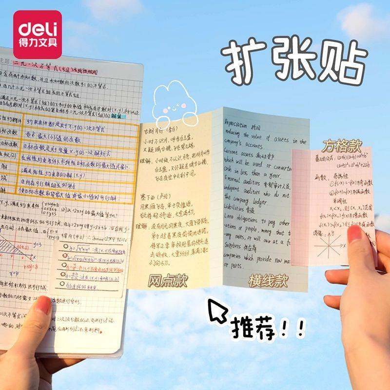 得力扩展便利贴扩页纸课堂实用笔记语文读书可折页补充贴纸学生用书上小学错题本考研订正改错便签纸