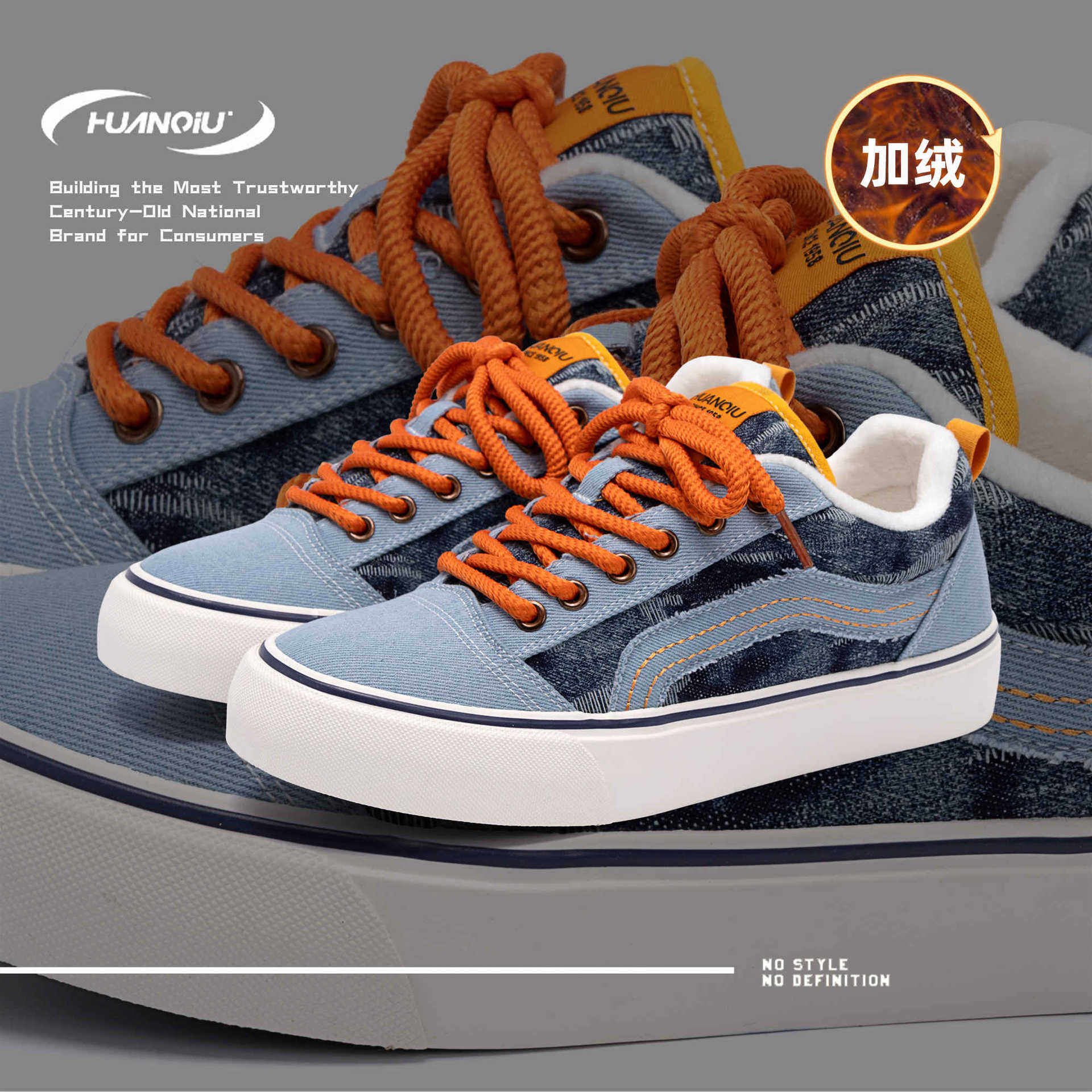 feiyue/飞跃帆布鞋女2025冬季新款爆款厚底保暖休闲加厚板鞋子男