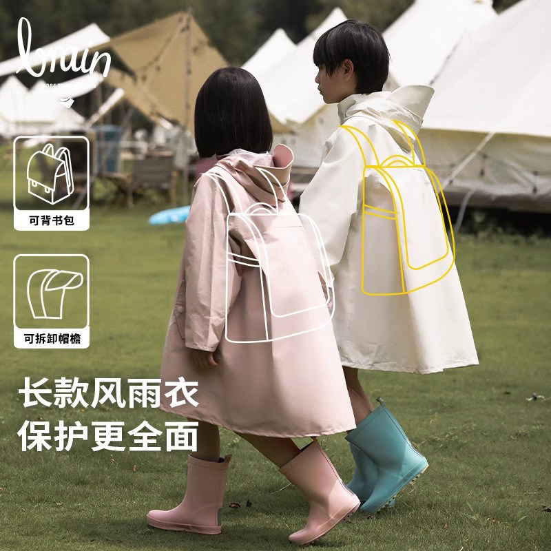 宝宝雨衣儿童防水中小童学生上学带书包位幼儿园轻薄男童女童雨披
