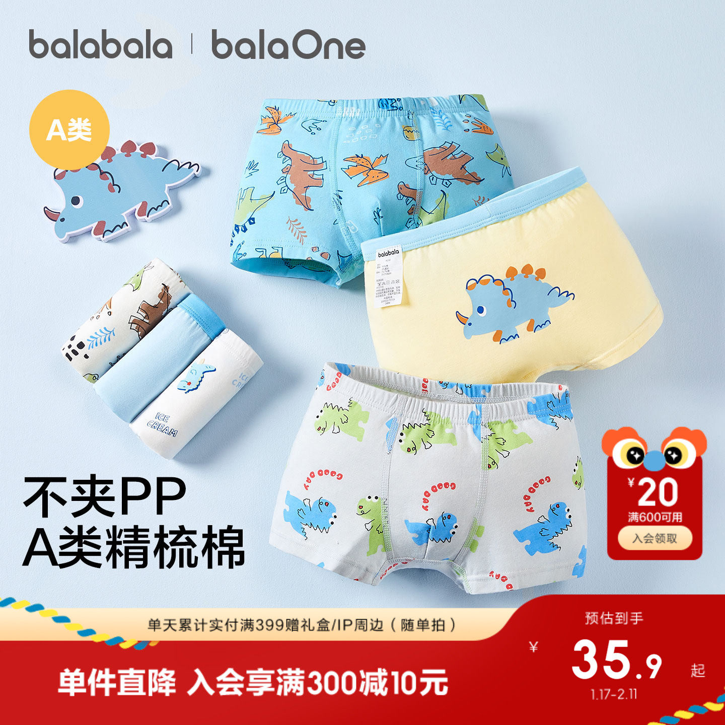 巴拉巴拉儿童内裤男童四角短裤棉平角不夹PP宝宝小大童抗菌三条装