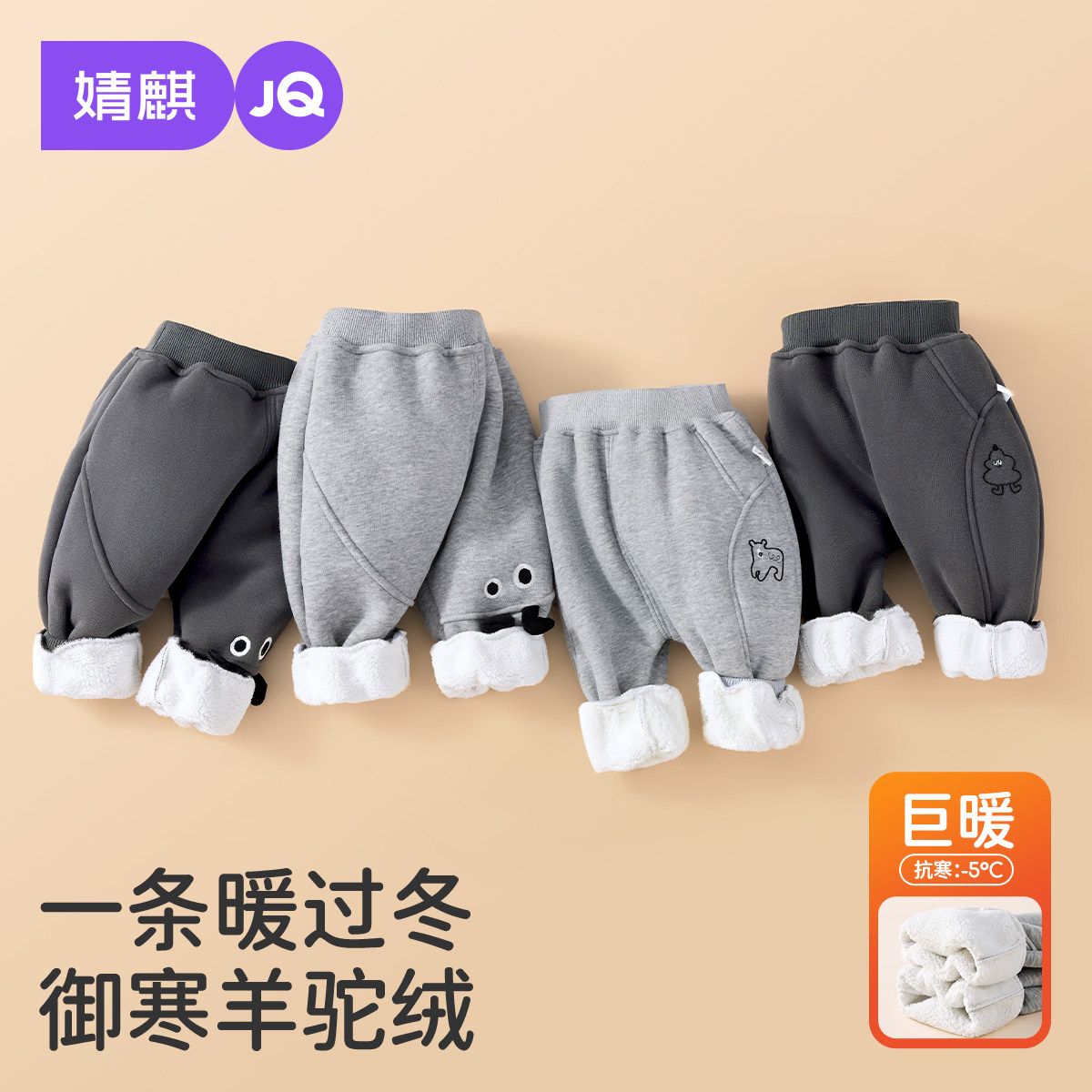 婧麒婴儿裤子加绒加厚保暖春秋冬儿童pp裤男童运动长裤宝宝屁屁裤