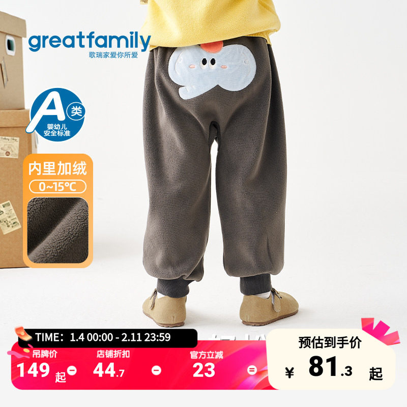 歌瑞家儿童PP裤2025冬款可爱卡通加绒宝宝保暖长裤婴幼儿休闲裤子