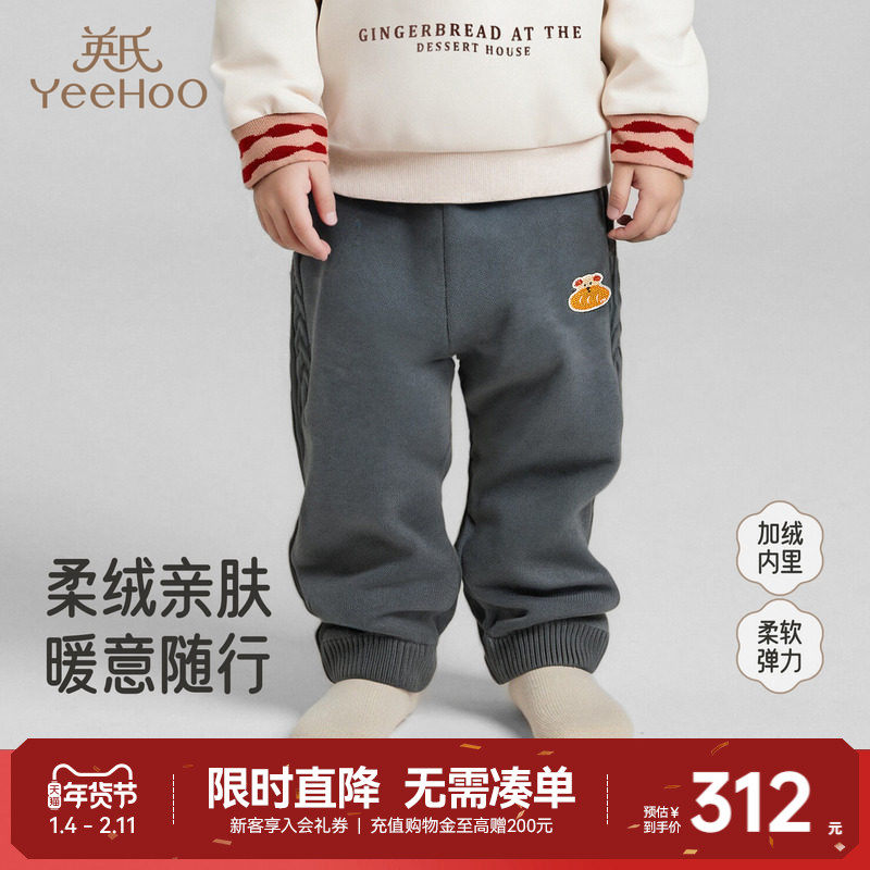 【商场同款】英氏儿童PP裤宝宝长裤男孩冬季柔软保暖加绒新款裤子