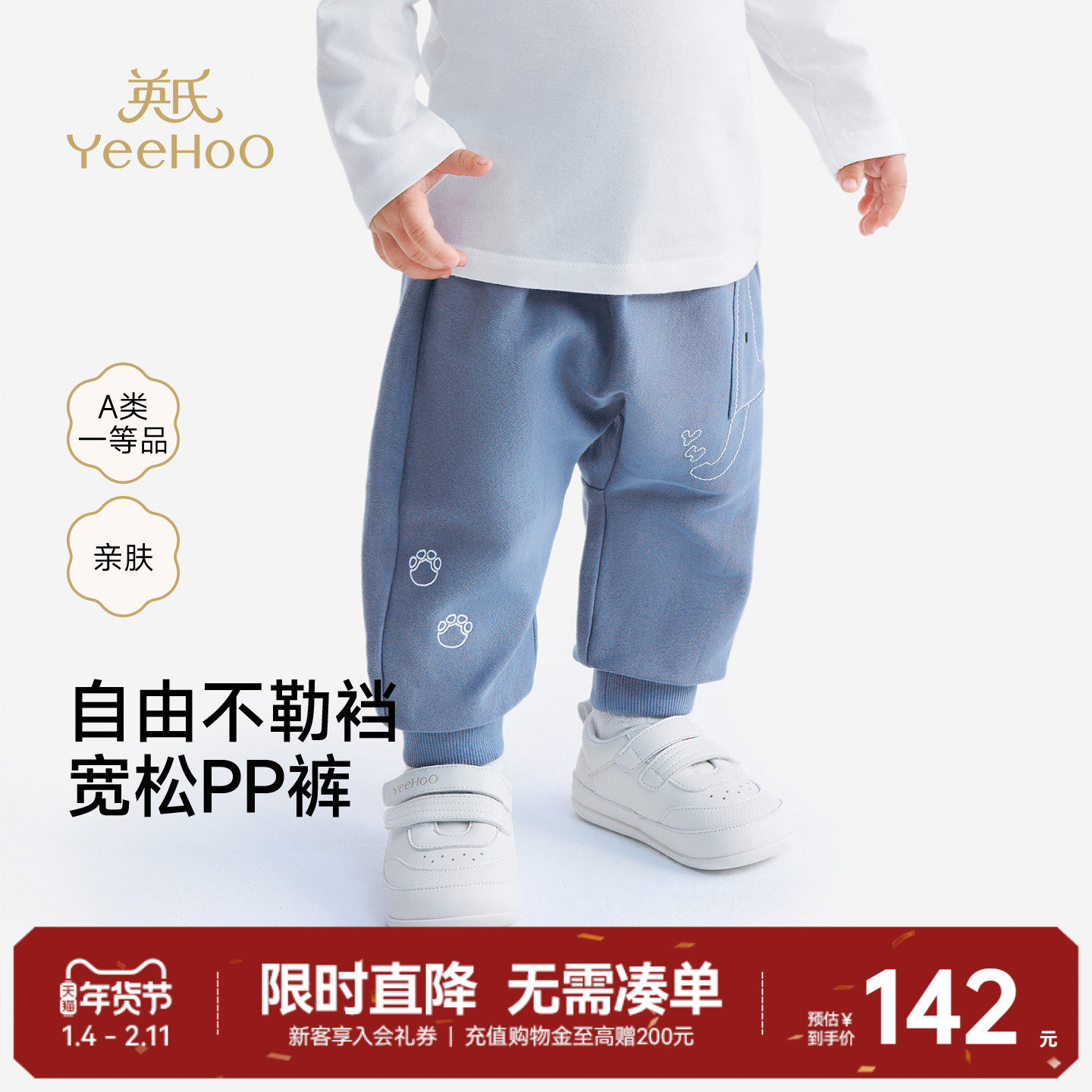 英氏宝宝屁屁裤长裤春季春秋冬男童婴儿束脚裤纯棉宽松儿童pp裤子