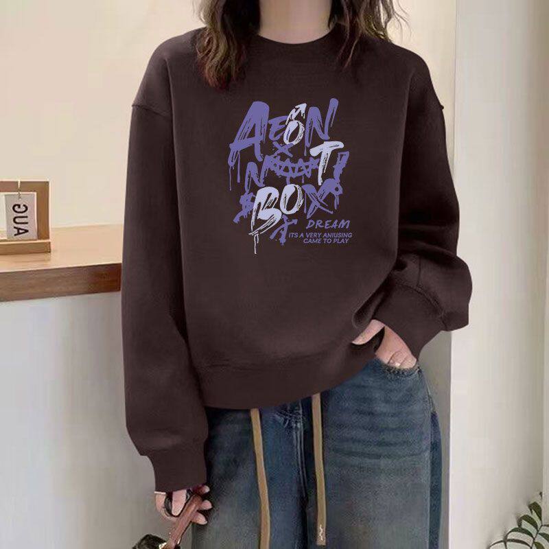 100%纯棉圆领宽松卫衣女韩版慵懒风休闲印花加绒加厚学生ins外套
