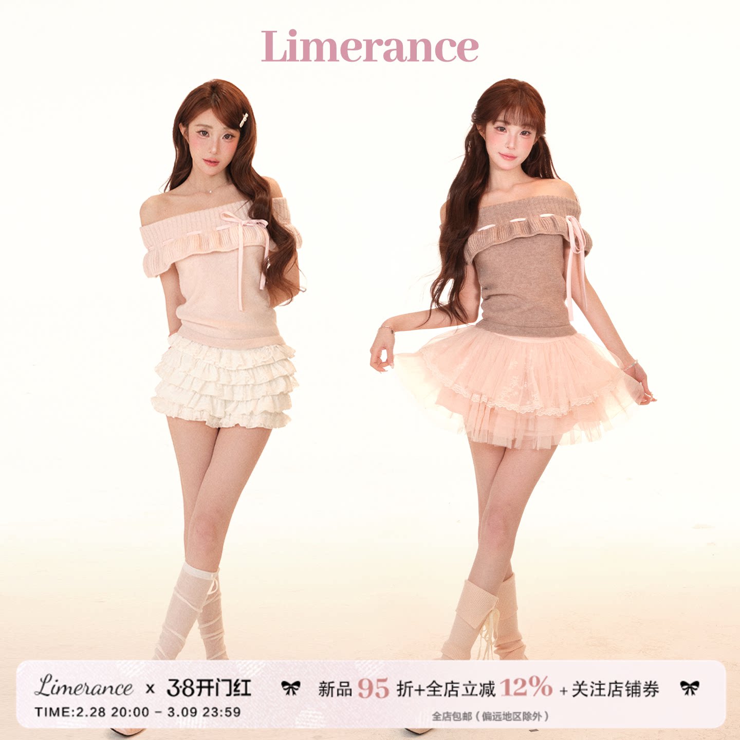 若语定制 高智韩女 一字肩绵羊毛上衣网纱半裙套装纯欲性感气质套