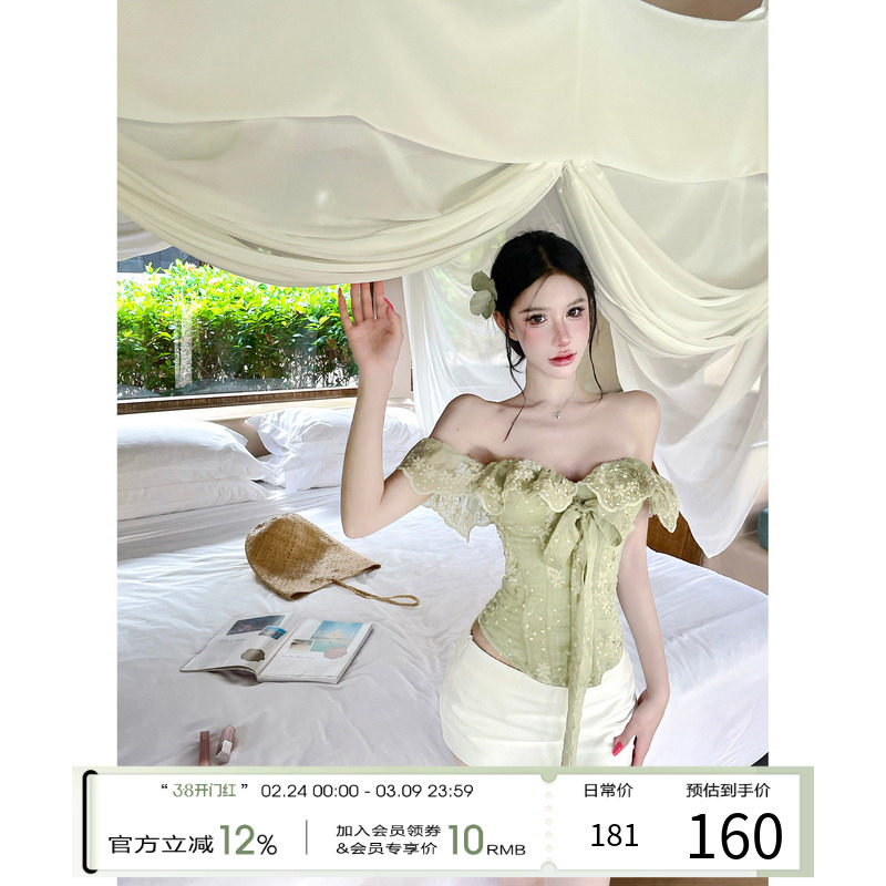 牛了牛了 一字肩抹胸上衣女2026早春新款法式鱼骨胸衣背心带胸垫