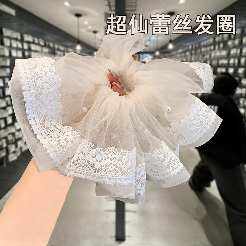 大肠发圈超仙超好看的白色蕾丝裙摆刺绣珍珠肥肠法式时尚扎发头绳