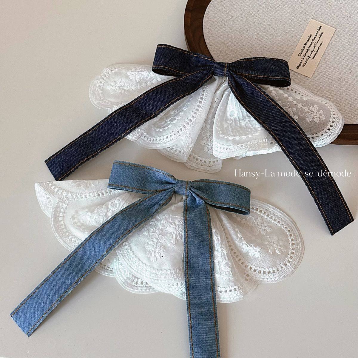 韩版牛仔蝴蝶结弹簧夹气质高级感白色蕾丝裙摆发夹少女学院风顶夹