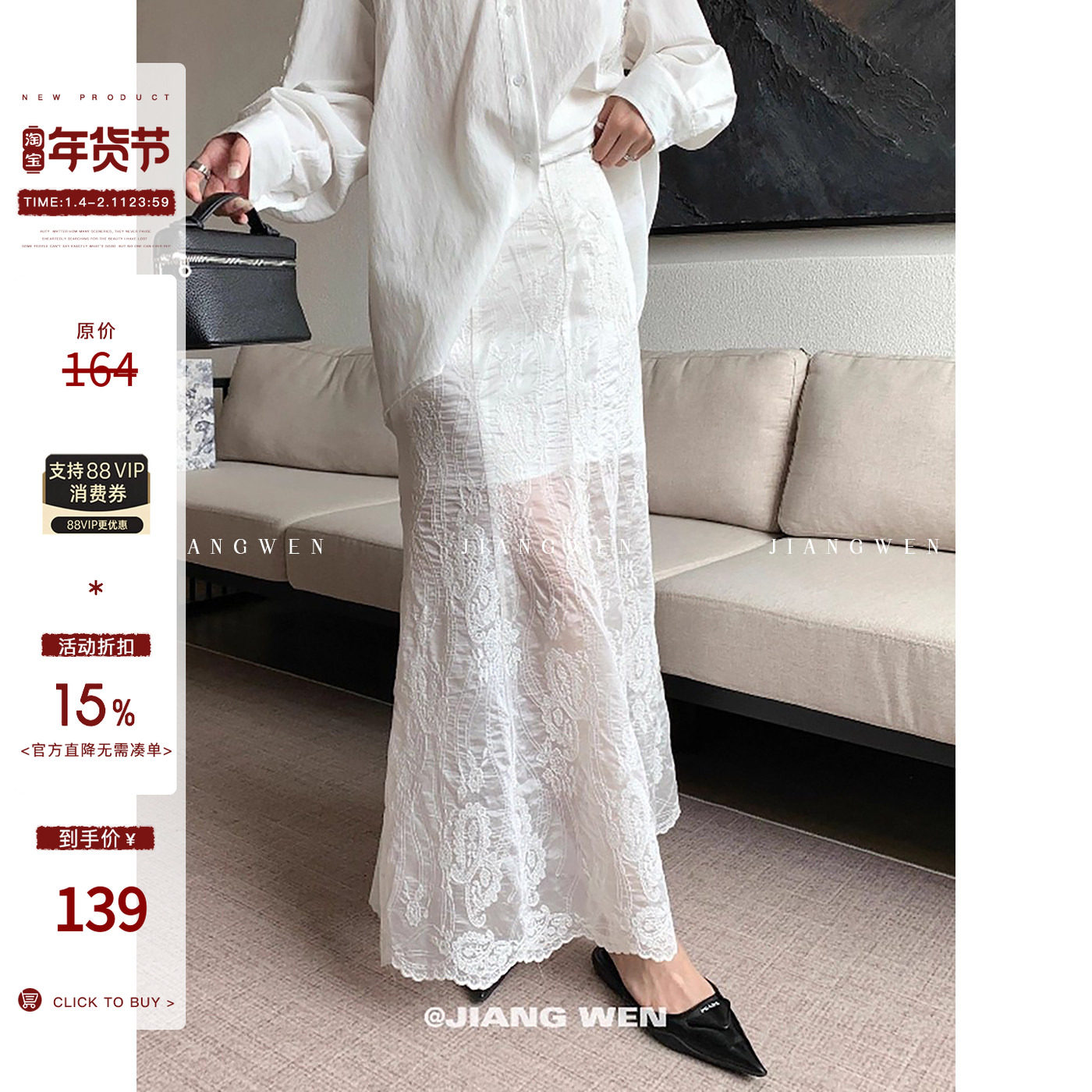 姜雯法式白色蕾丝裙鱼尾裙轻奢高级感轻薄包臀半身裙女夏高腰小众