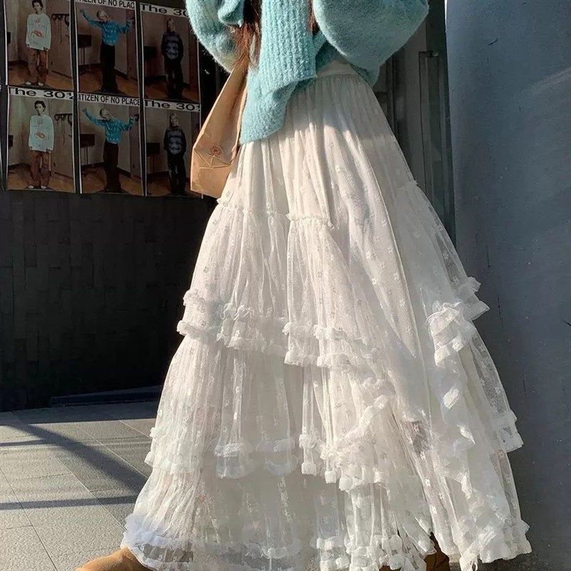 少女感白色小个子蛋糕裙蕾丝百搭显瘦2024秋冬新款ins韩版半身裙