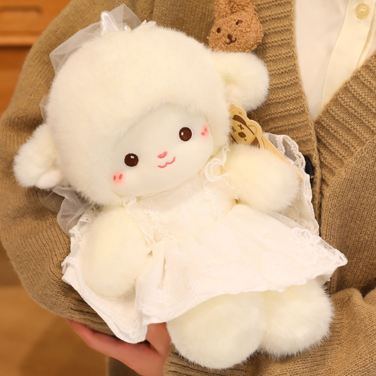 可爱小羊公仔毛绒玩偶白色蕾丝裙毛茸茸婚纱压床布娃娃结婚礼物女