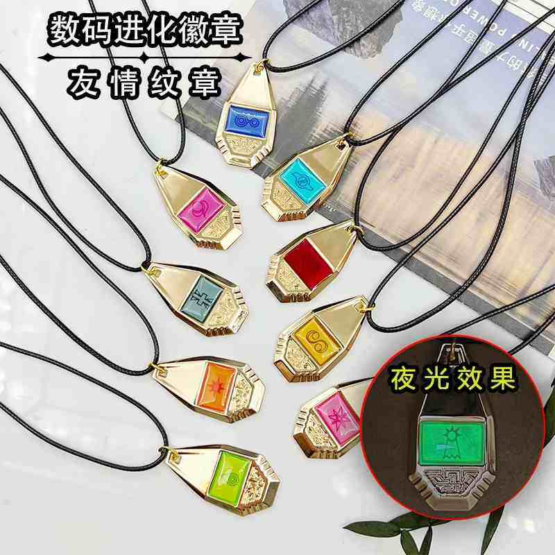数码宝贝神圣计划动漫周边爱心智慧勇气友情徽章合金夜光项链吊坠