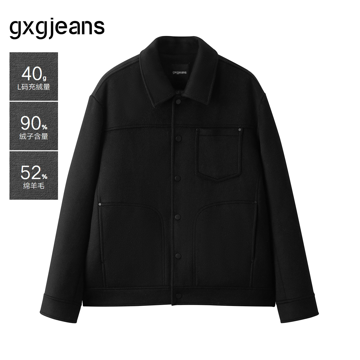 gxg.jeans男装 黑色简约基础宽松羽绒呢外套短款大衣 24年冬季