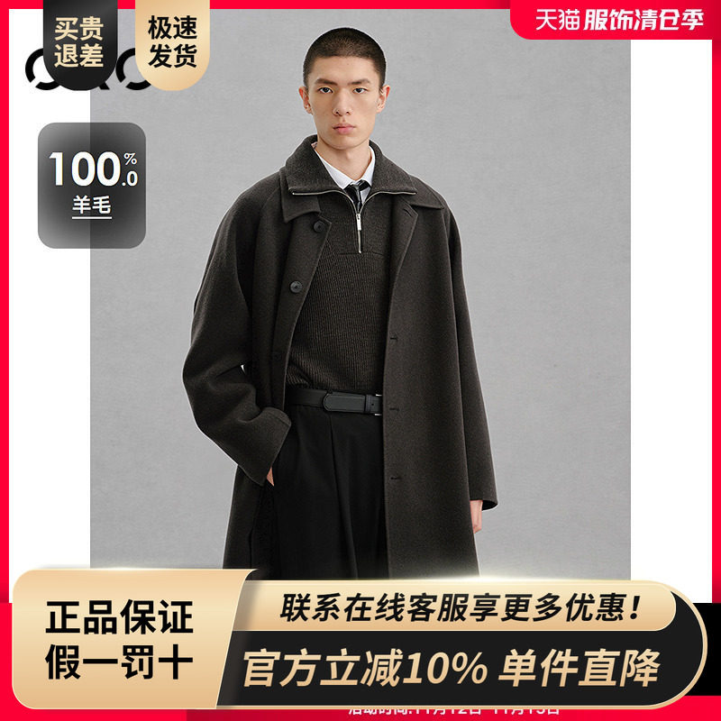 gxg.jeans男装秋冬款羊毛翻领长款单排扣保暖双面商务呢大衣