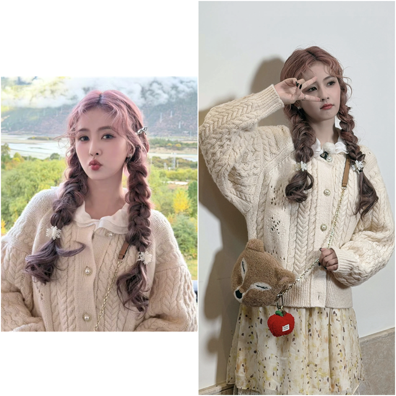 2025秋冬新款赵露思明星同款毛衣女小众宽松麻花针织开衫短外套潮