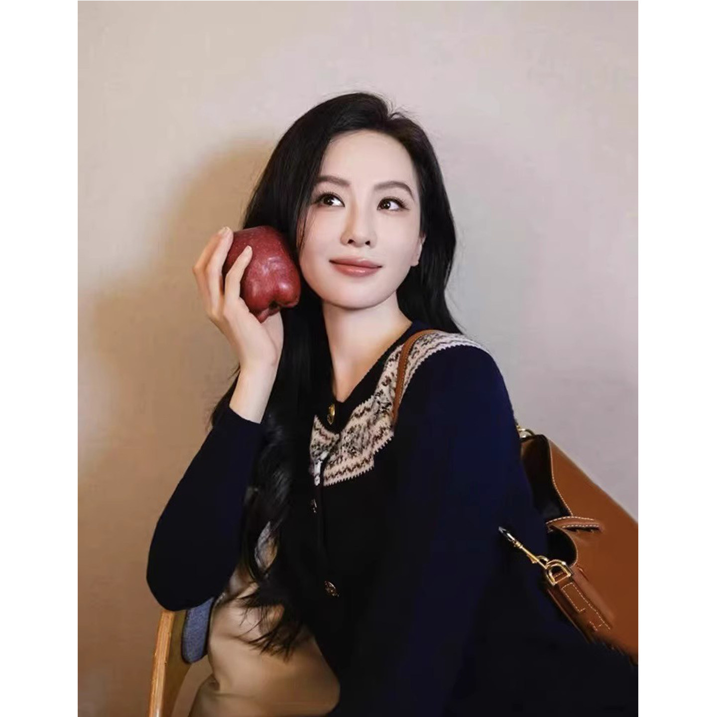 明星同款!法奢CE家费尔岛提花山羊绒羊毛针织开衫圆领毛衣外套女