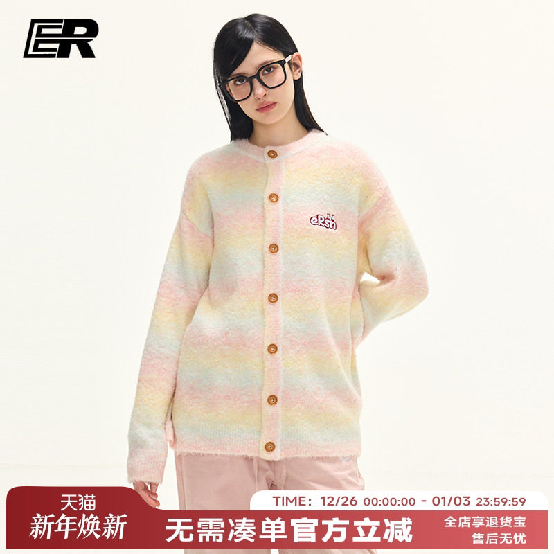 【明星同款】ER彩虹毛衣开衫女2026秋新款国潮校园风温柔针织外套